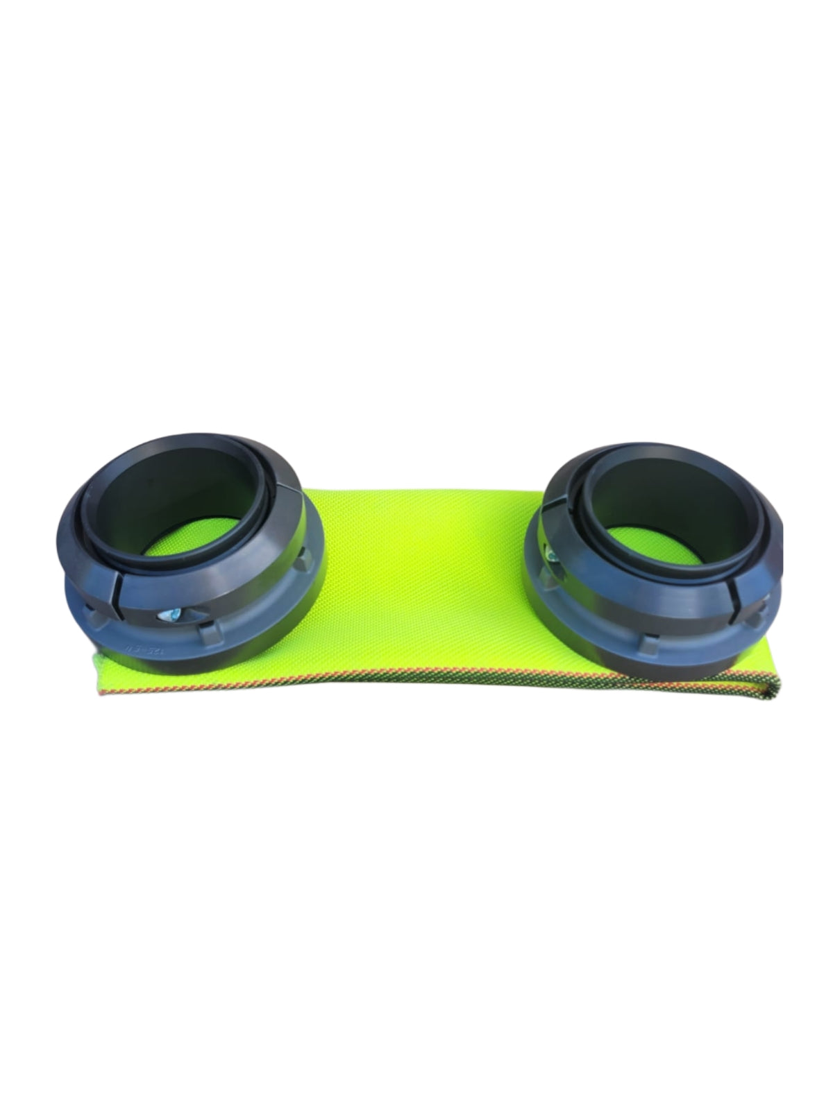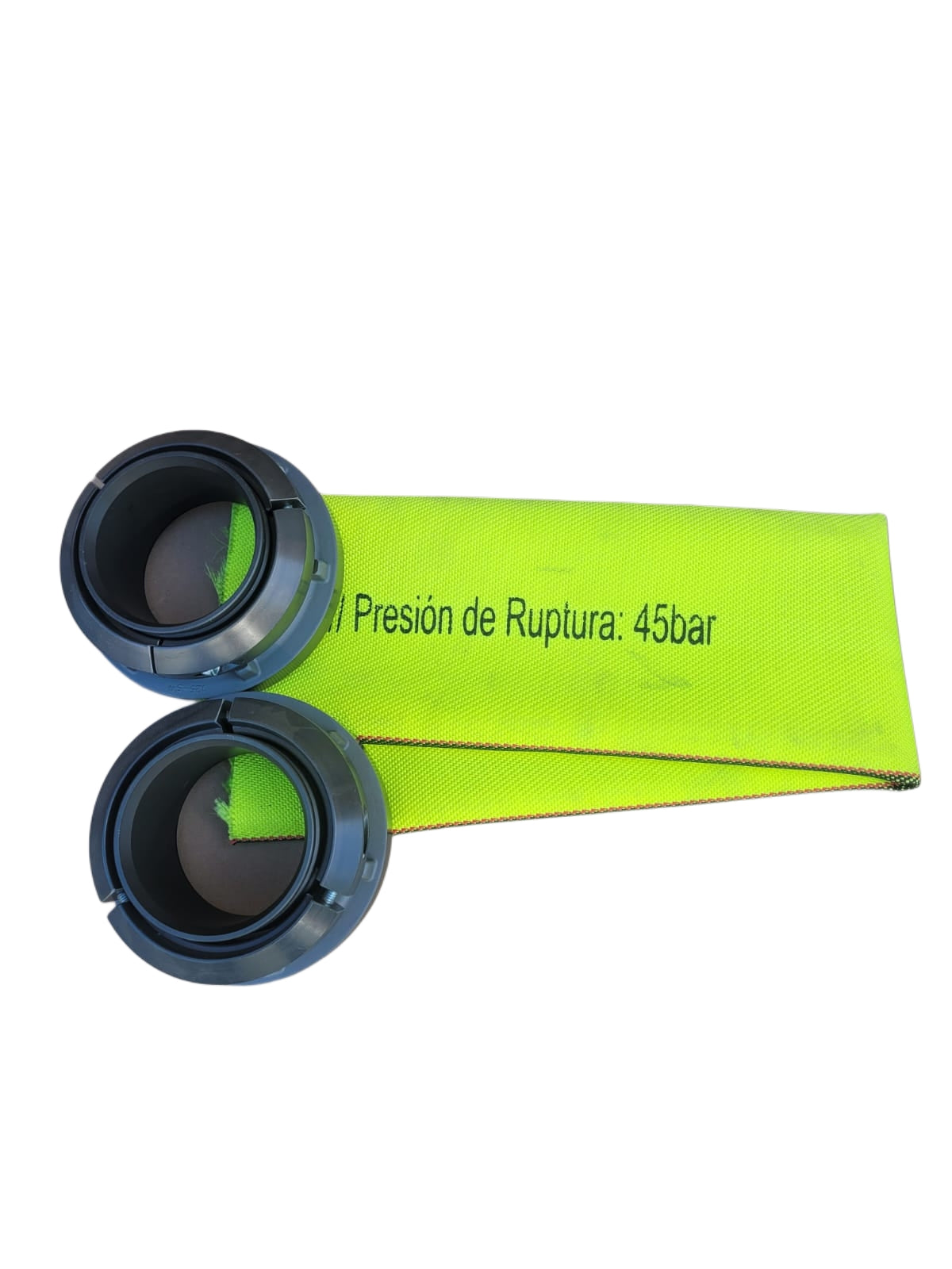 Manguera LDH de 5" tejida en fibra de polyester, tubo interno en caucho sintético, largo 30mts con uniones storz de 5" con abrazaderas sin seguro
